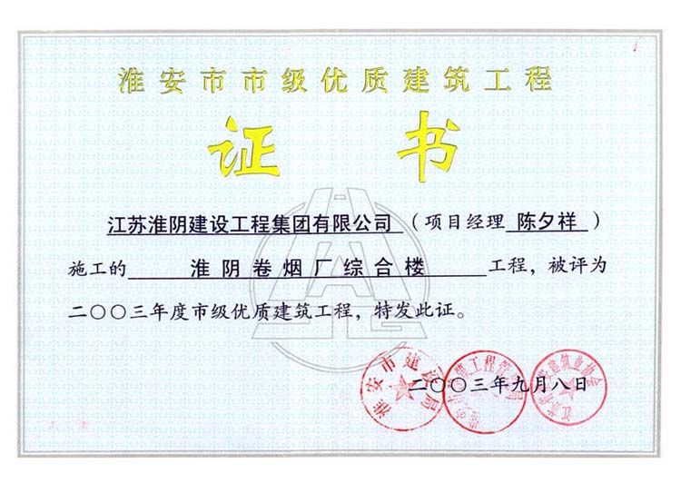 2003年市级优质工程淮阴卷烟厂综合楼(陈夕祥)