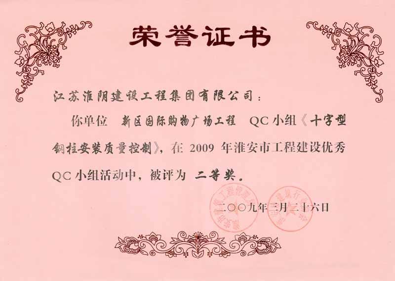 2009年市QC二等奖(新亚国际购物广场-十字型钢柱安装质量
