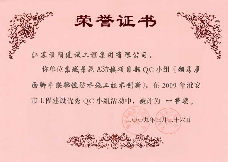 2009年省QC二等奖(裙房屋面脚手架部位防水施工技术创新)