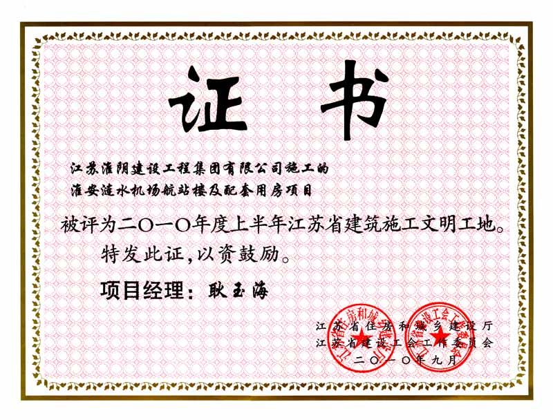 2010年省文明工地淮安涟水机场航站楼及配套用房项目