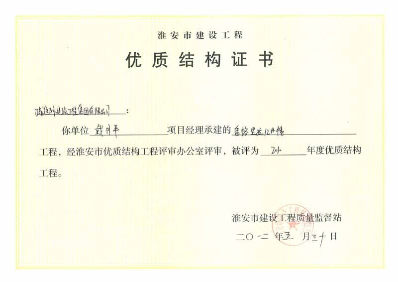 2012年市优质结构香格里拉12号楼
