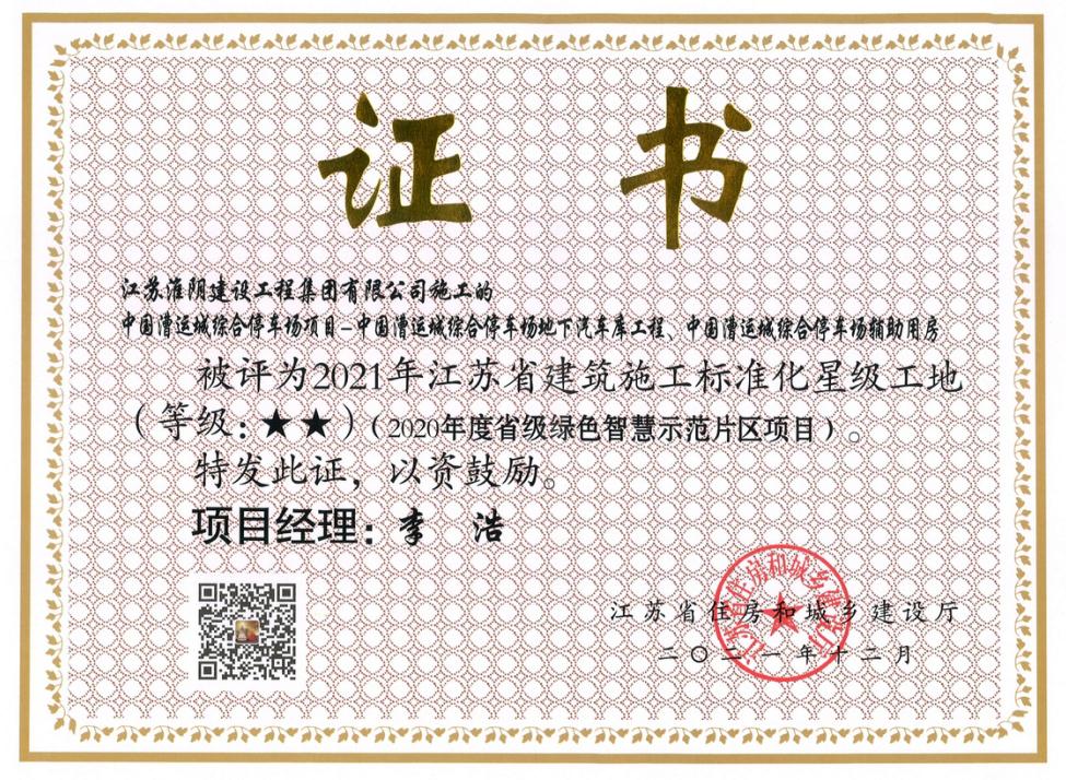 江苏省标化工地-中国漕运城综合停车场地下洗车库、辅助用
