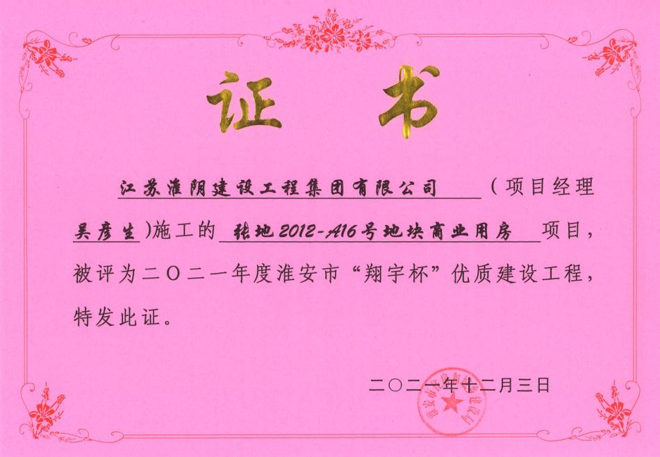 淮安市翔宇杯-张地2012-A16号地块商业用房