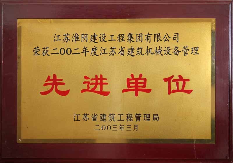 2002年江苏省建筑机械设备管理先进单位