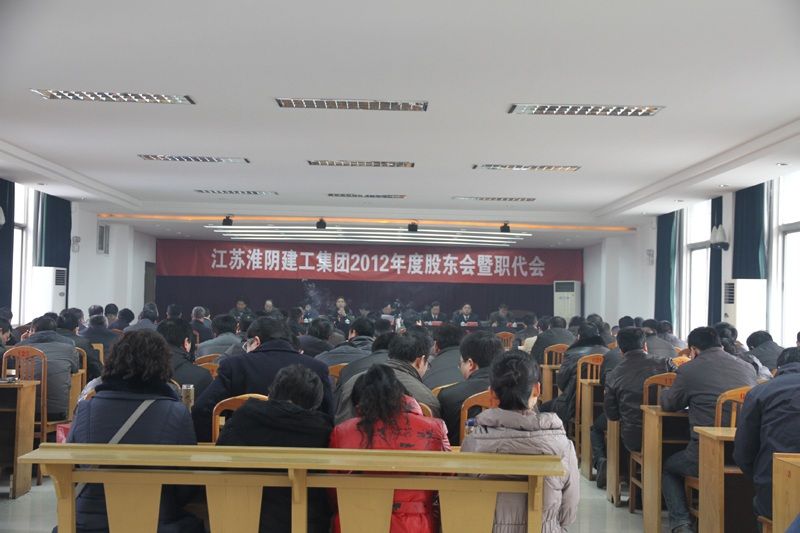 市建工局侯继海副局长代表市建工局对集团2012年度股东会暨职代会的召开表示热烈的祝贺。侯局长在分析了省、市建筑业企业发展状况,和集团所具备的行业优势后,希望集团“活思想、树信心、求发展、创特级”,自我加压,勇于挑担,为淮安建筑业发展带好头,争取“十二五”末成为特级资质企业。